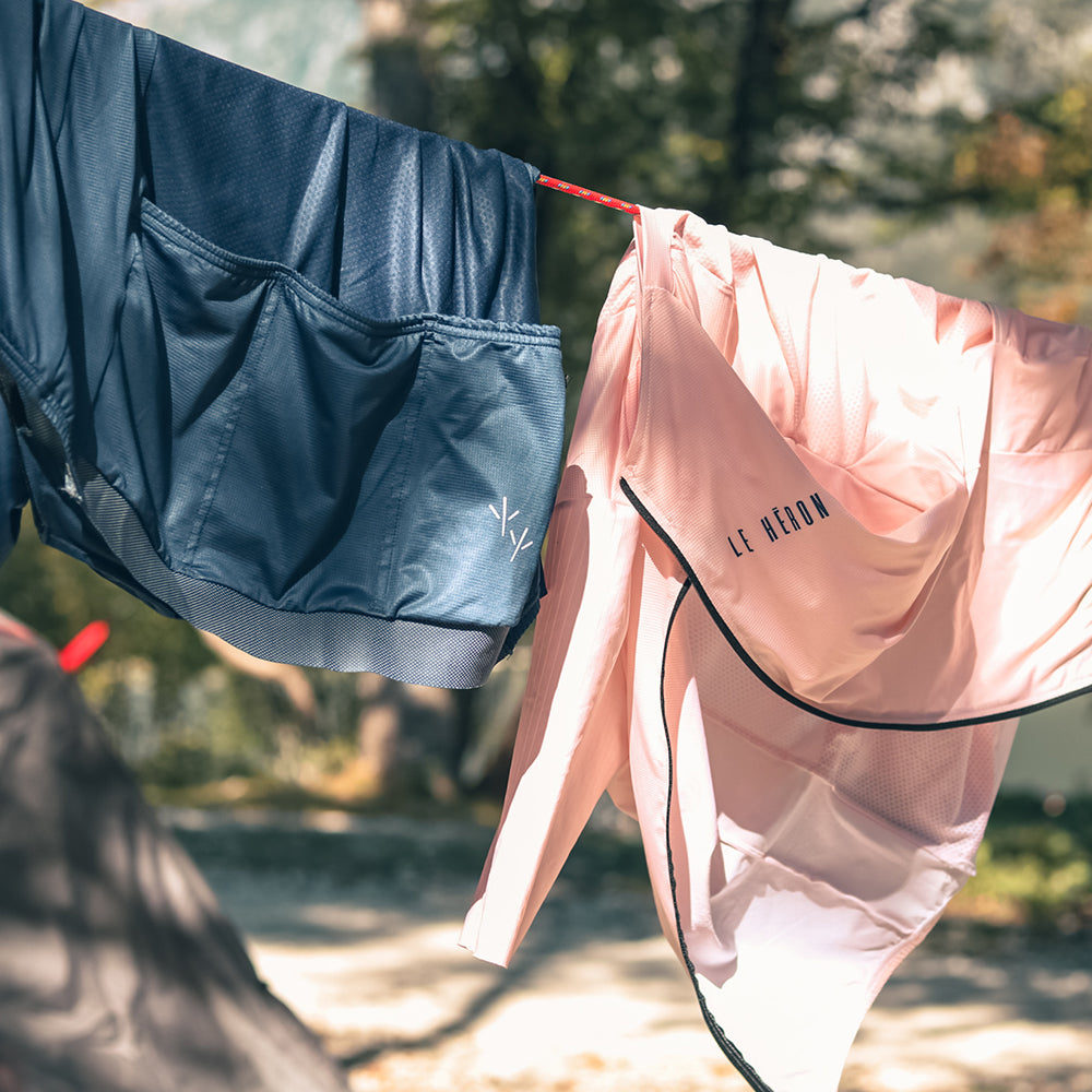 Na wat samples, stoffen, passen en aanpassingen verder hebben we een toffe combi weten te vinden. De kleding was rond, nu de naam nog. Opeens kwam daar een anekdote van Chiel & Pascal Eenkhoorn boven; ‘’Je moet fietsen als een reiger; eerst met het ene been, daarna met de ander’’. Vertaal dit naar het frans en Le Heron was geboren!
